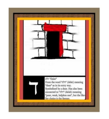 Dalet atau angka 4 digambarkan sebagai pintu yang terbuka, juga digambarkan seseorang dengan posisi yang membungkuk, menunduk, yang melambangkan kerendahan hati.